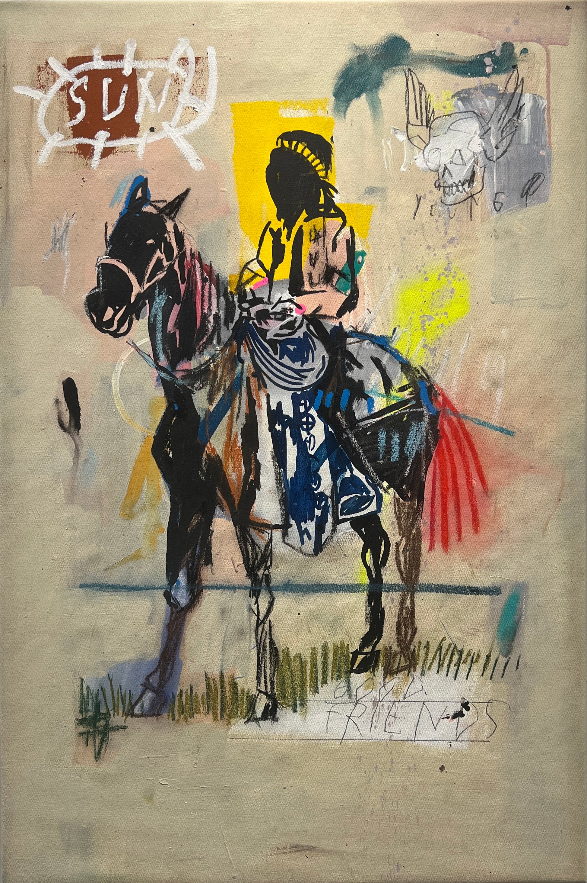 In Unknown Legend, Terry Urban crafts a hauntingly poetic series of paintings centered around faceless riders cloaked in mystery. Each character—typically depicted on horseback—emerges from dreamlike landscapes, their identities obscured by shadows that veil their faces. This intentional concealment invites the viewer into an open-ended narrative, urging personal interpretation over imposed meaning. By withholding facial expressions, Urban hands over the reins of the story to us, allowing each observer to project their own thoughts, feelings, and legends onto these enigmatic figures. The result is a powerful visual dialogue about anonymity, storytelling, and the myths we create in the absence of clarity.