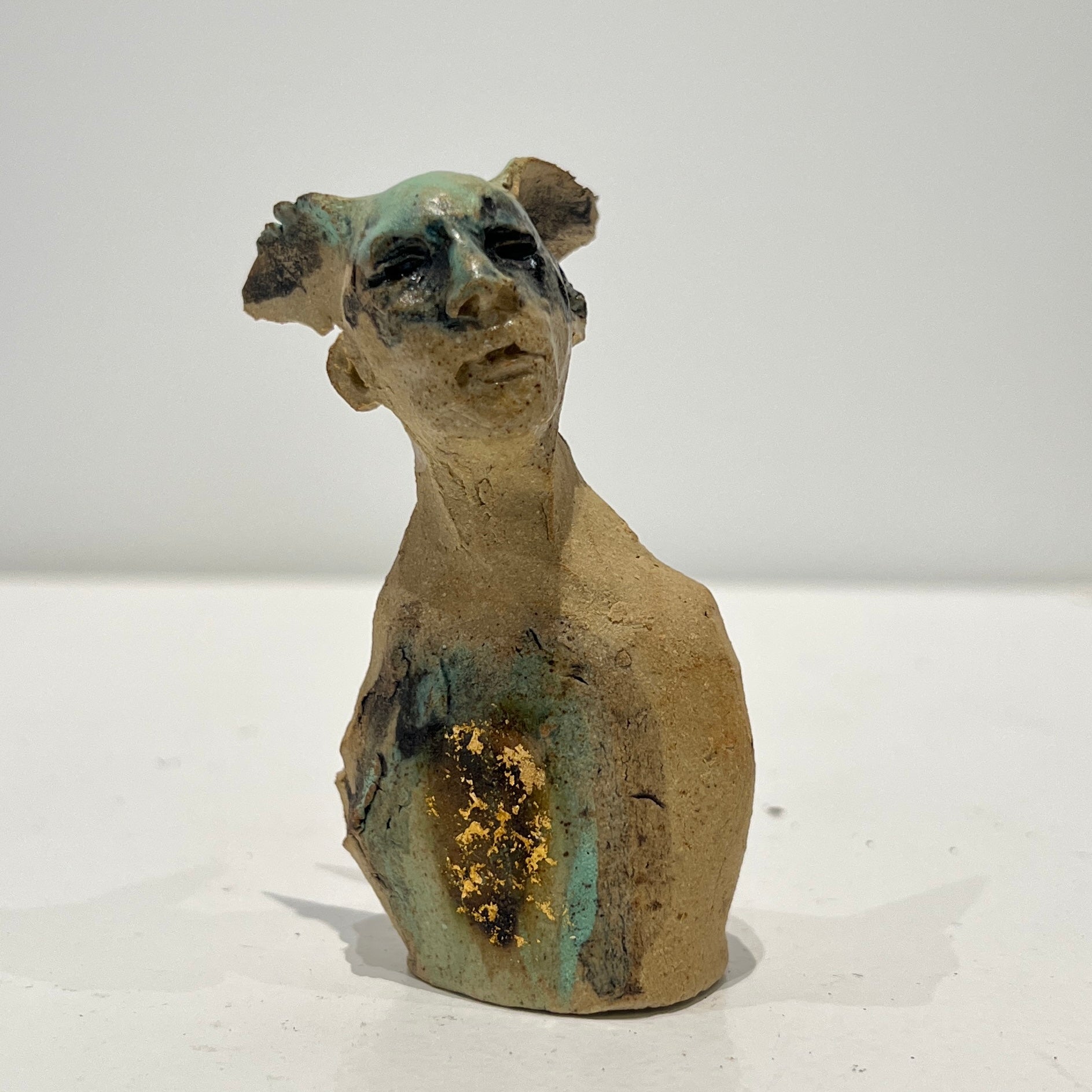 Stoneware ceramic clay mini bust with oxides, glaze and body stain.