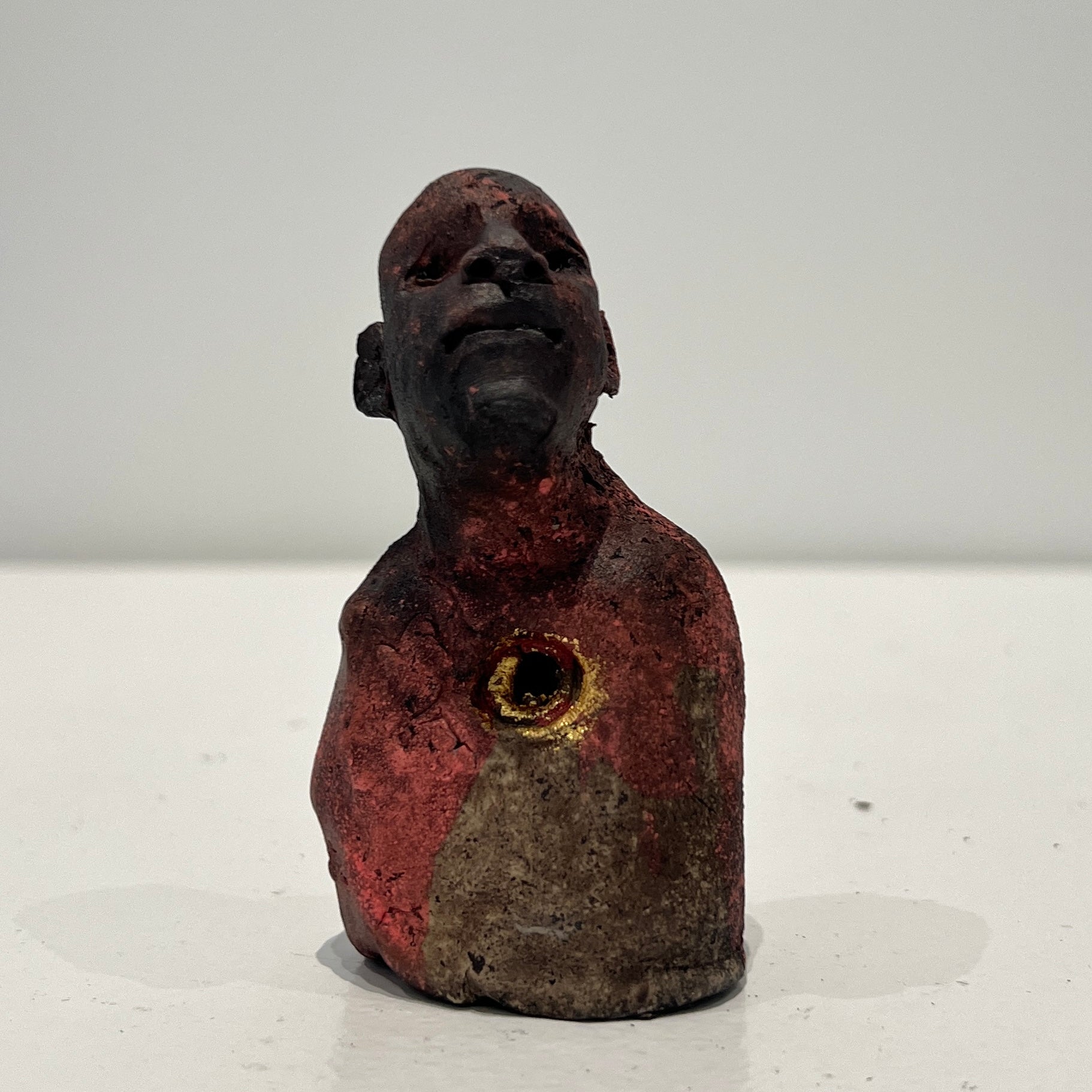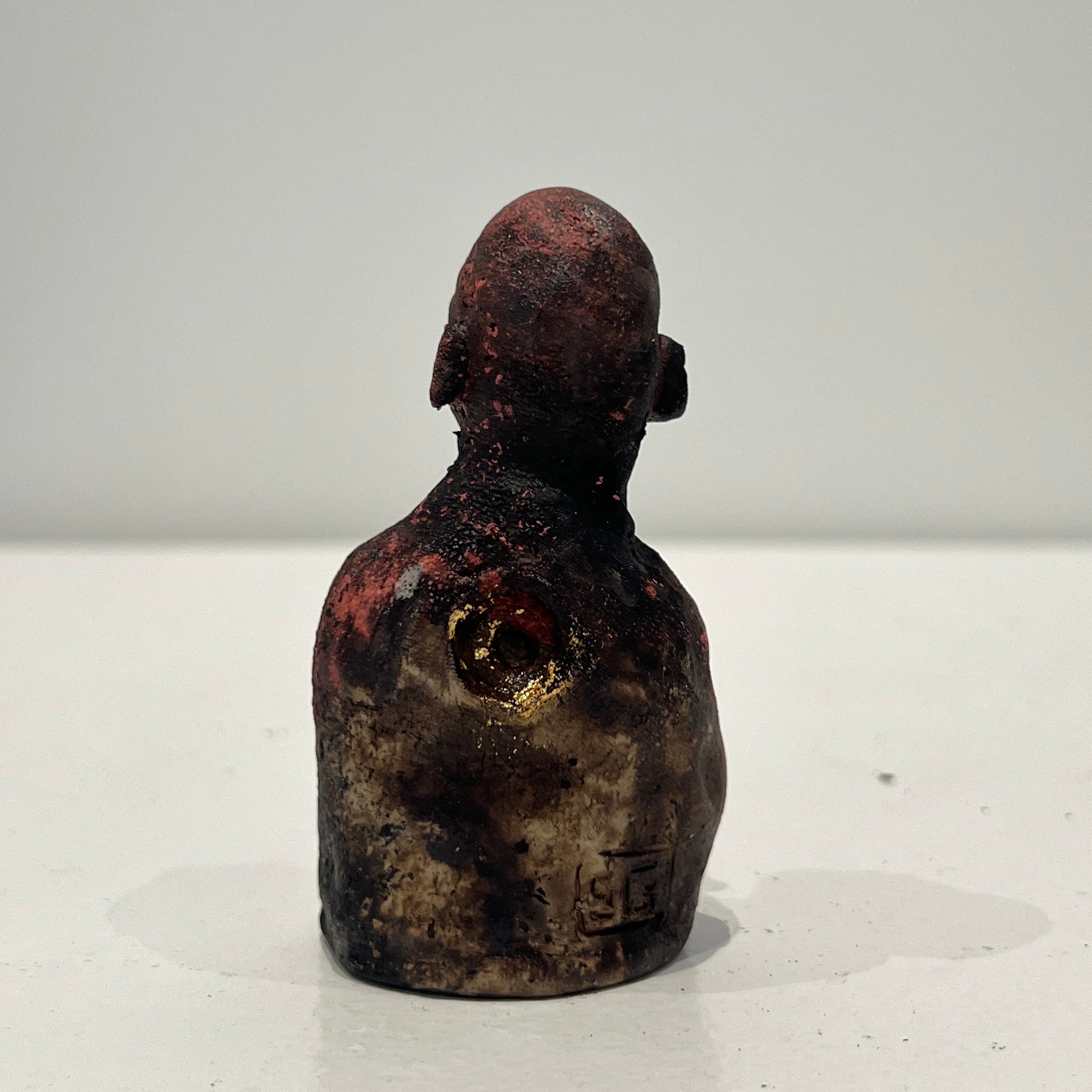 Stoneware ceramic clay mini bust with oxides, glaze and body stain.