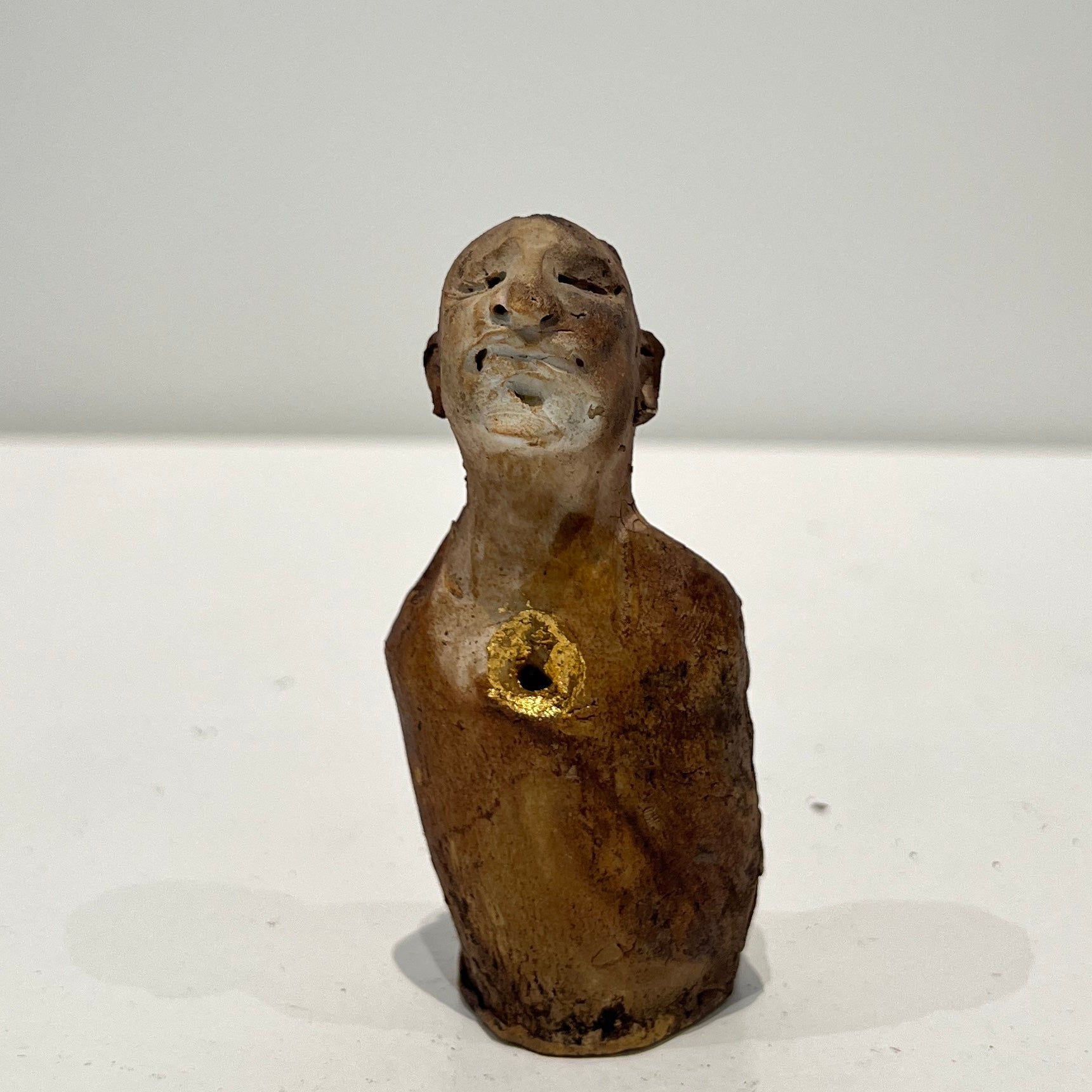 Stoneware ceramic clay mini bust with oxides, glaze and body stain.
